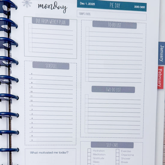 Embrace the busiest—and coziest—season of the year with our Winter Big Life Planner. Designed to help you stay organized while savoring every magical moment, this planner has Monthly, Weekly, and Daily spreads from December through February.