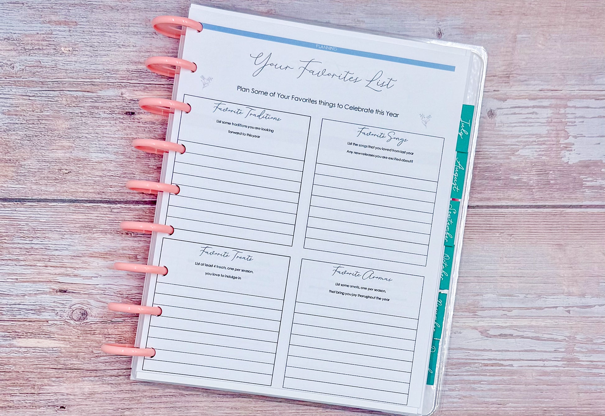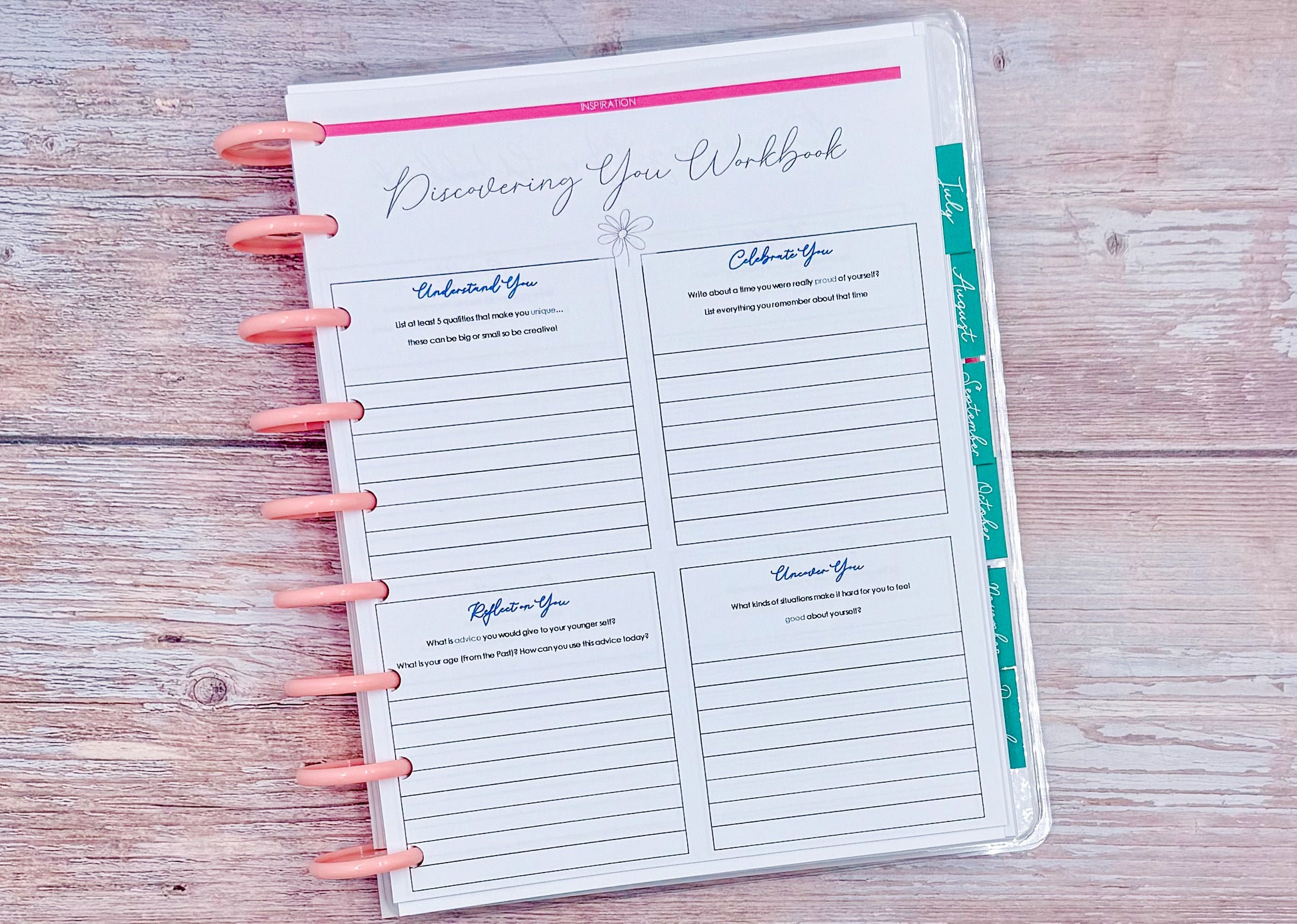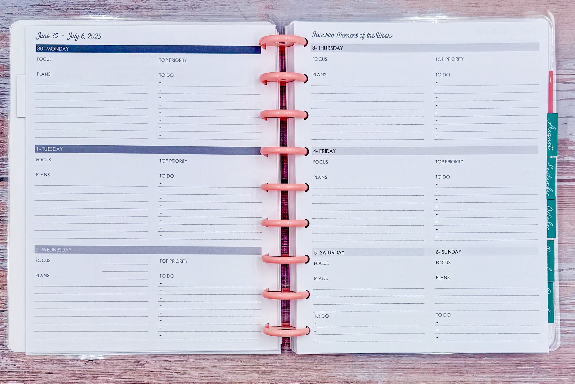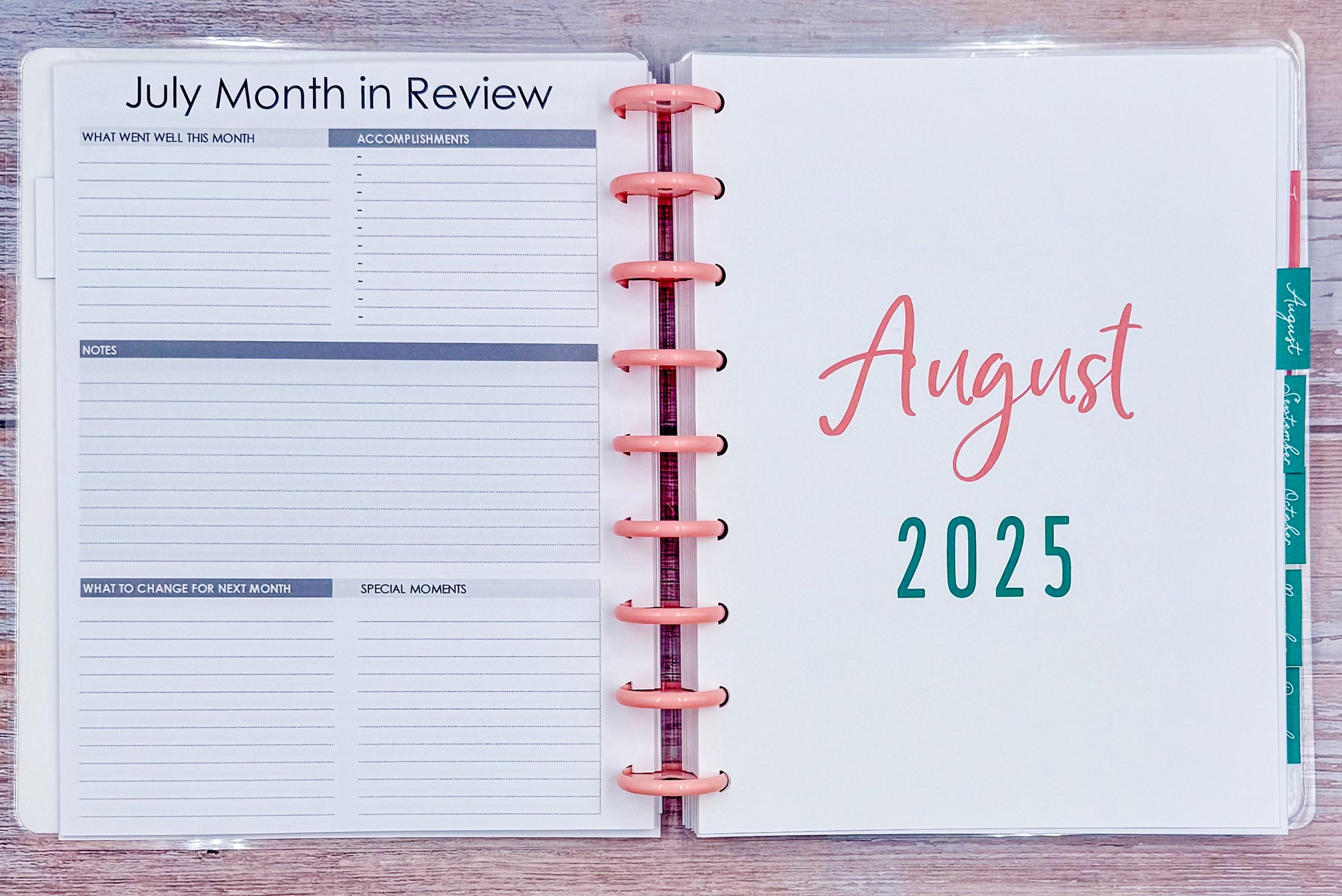 Spreads:Â Monthly, Monthly / Weekly Horizontal, Planning (Beginning and End) Pages, Discovery Workbook, Wheel of Life, Your Goals, Monthly Reset and MORE!Â