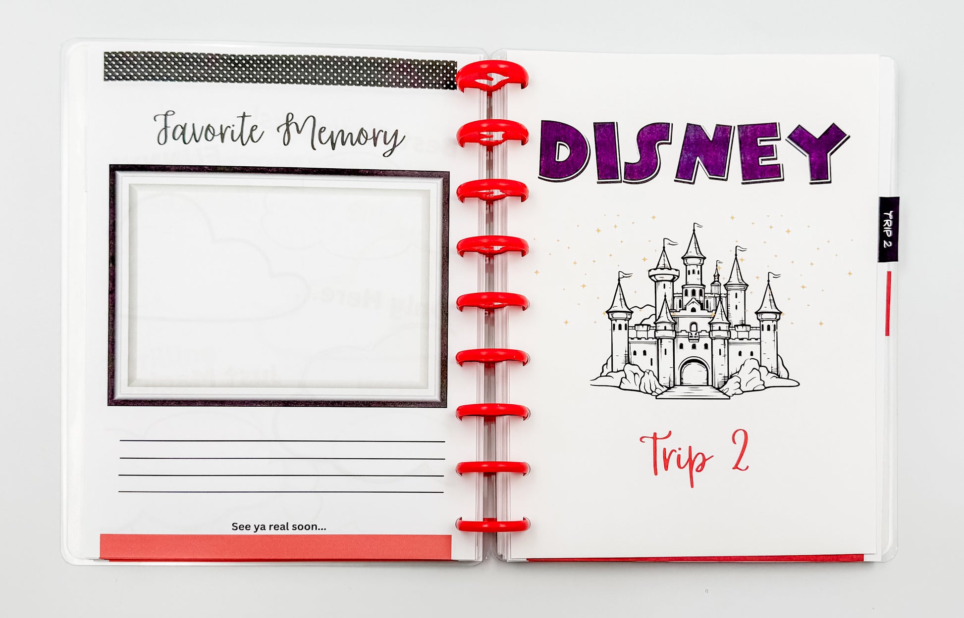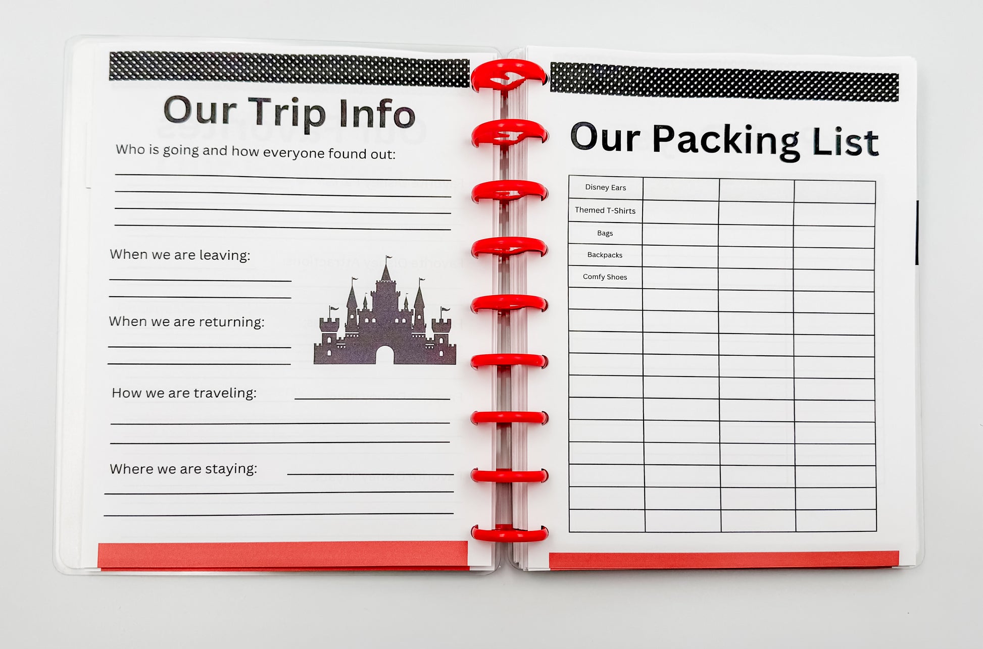 This unique Disney Travel Planner lets you pack/plan and record your favorite moments and memories for up to FOUR Disney Trips!