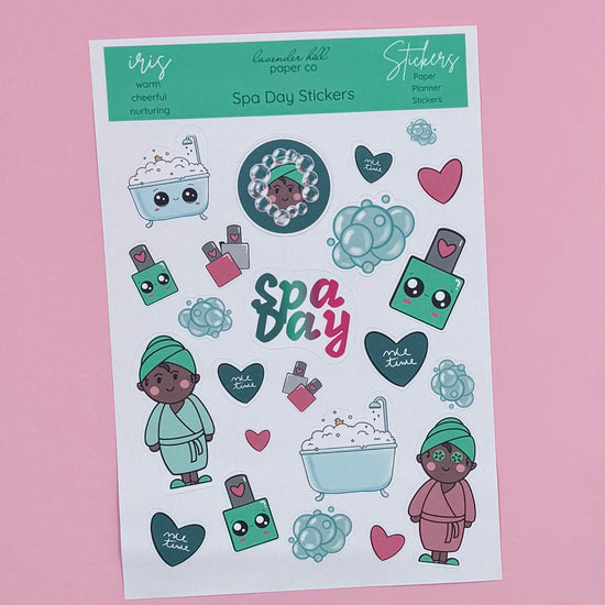 Treat your planner to a little self-care with our Spa Day sticker sheets, part of the charming Flower Girls Collection from Lavender Hill Paper Co. These cozy, hand-illustrated designs bring a calming touch of wellness to your daily planning—think bubbly baths, fluffy towels, manis & pedis, and our flower girls enjoying all the pampering vibes.