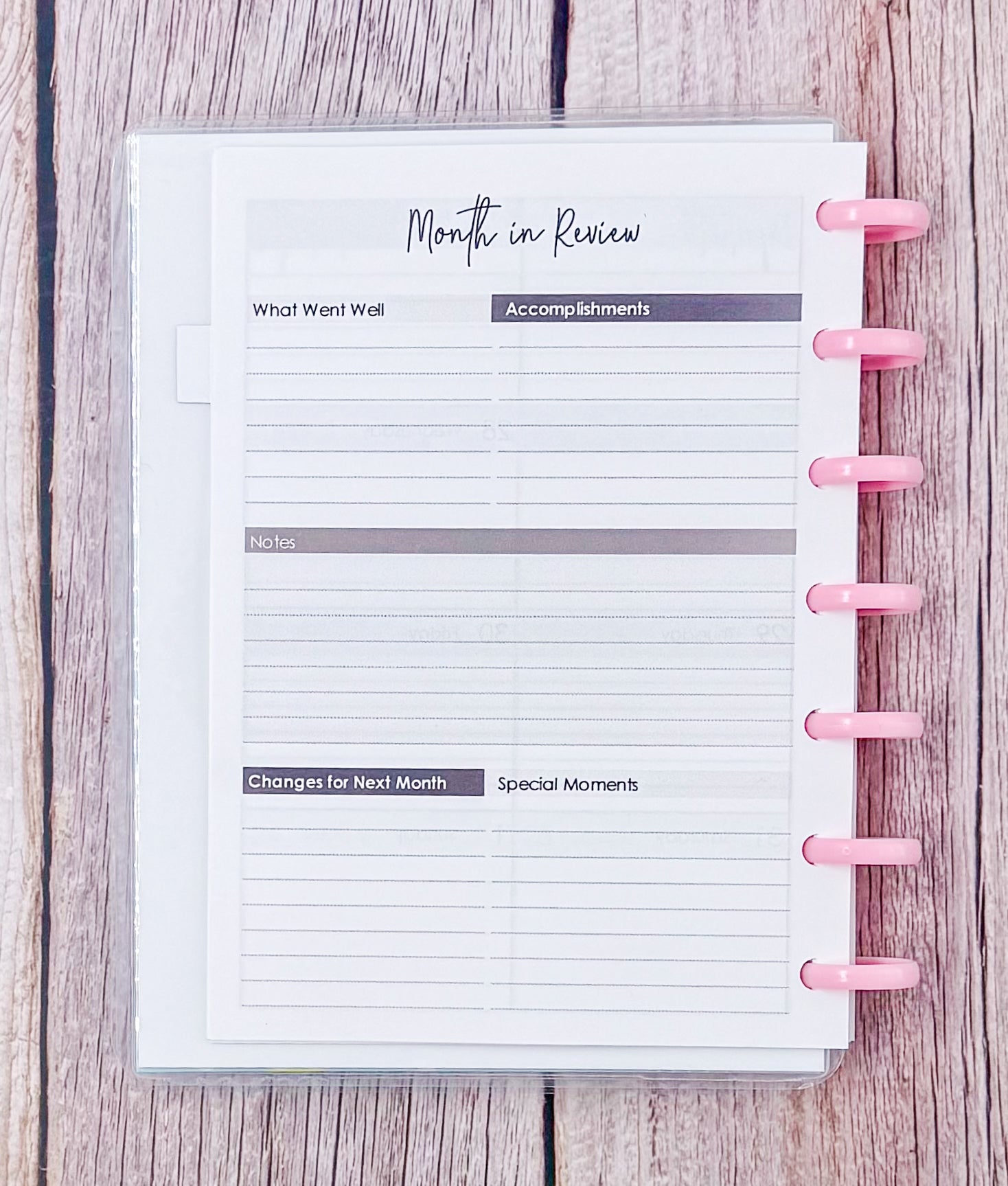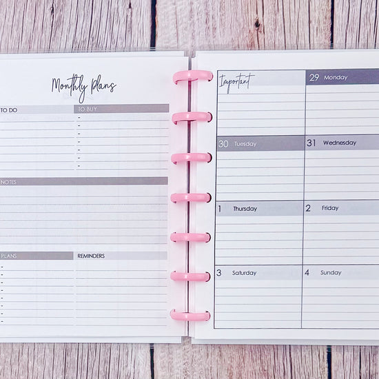 Unlike its larger siblings, the Mini skips the yearly planning section, making it light, streamlined, and focused on what matters most: your growth, one month and one week at a time.