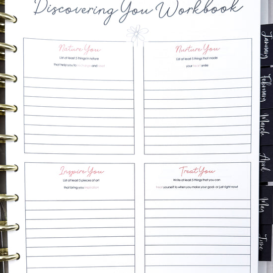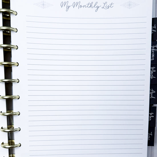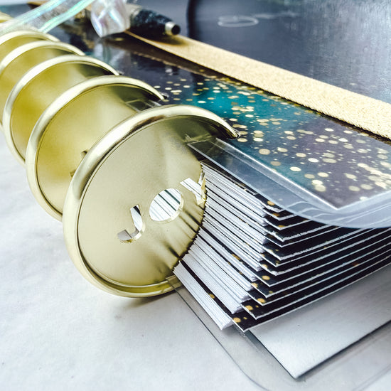 At the heart of this bundle is our stunning Luxe Planner, bound with metal discs that add both durability and undeniable sophistication. Every page turns with a satisfying glide, and every detail feels intentional, polished, and premium.