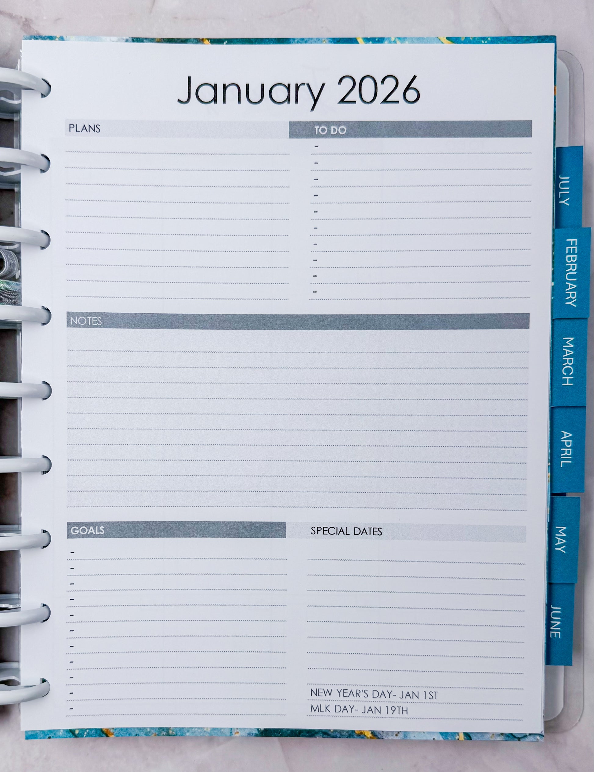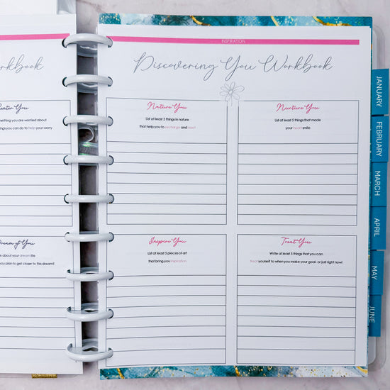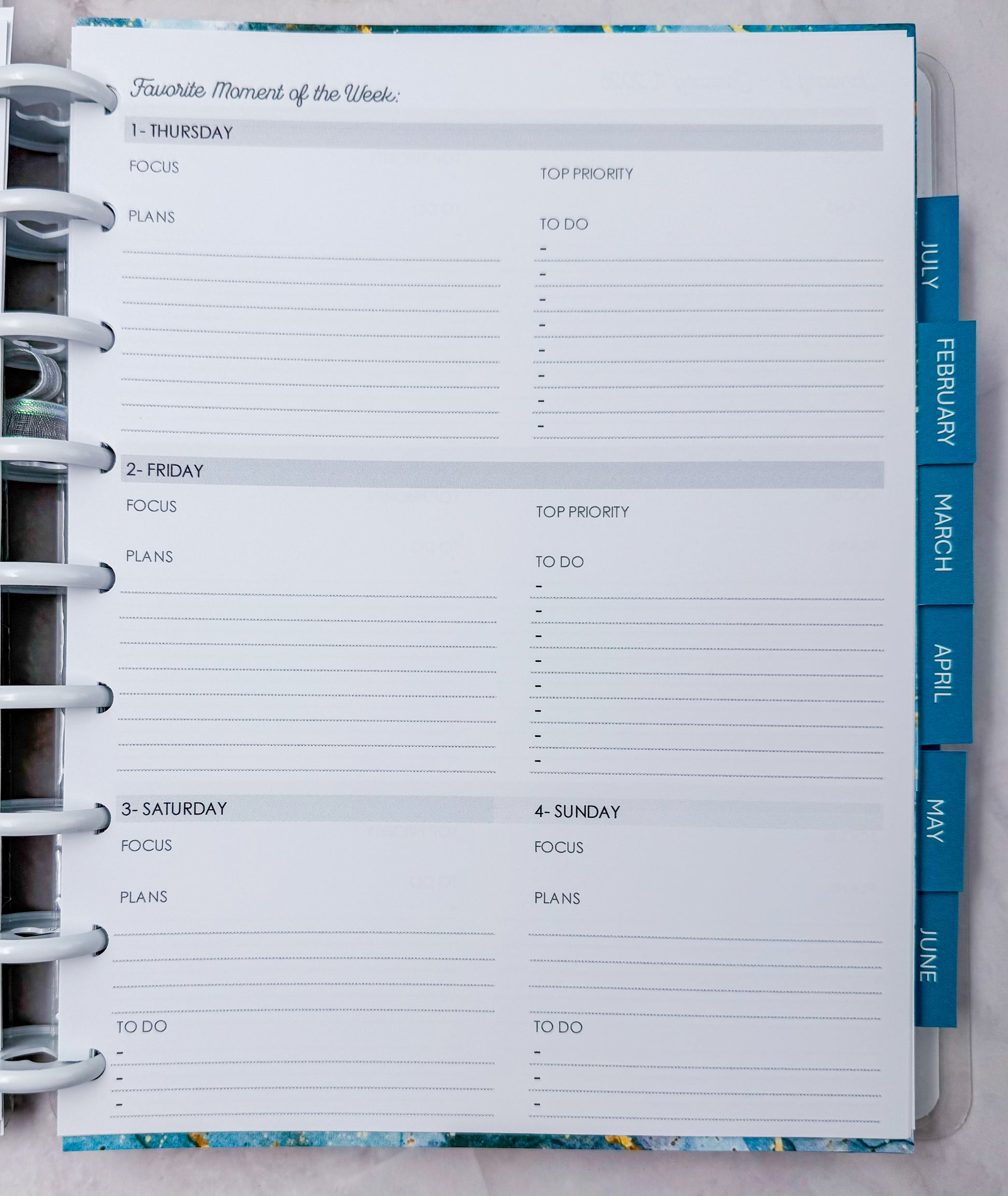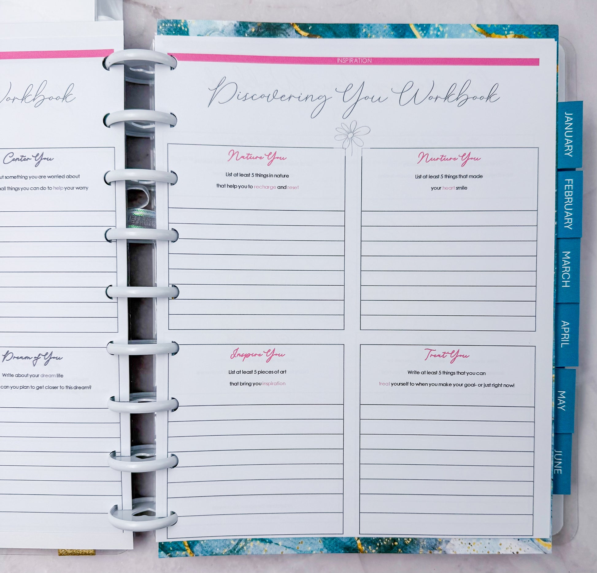 Spreads: Monthly, Monthly / Weekly Horizontal, Planning (Beginning and End) Pages, Discovery Workbook, Wheel of Life, Your Goals, Monthly Reset and MORE!