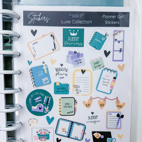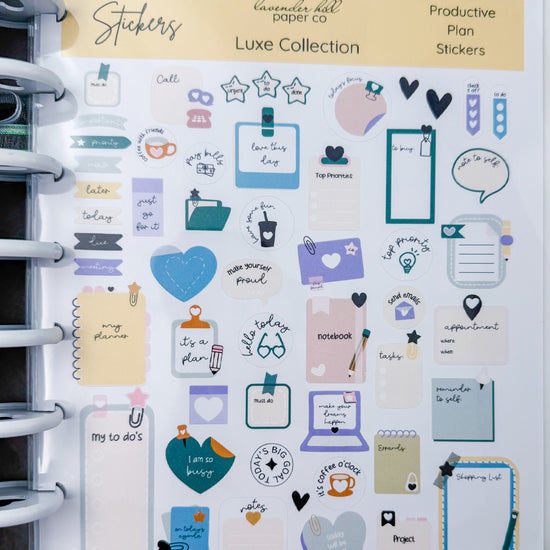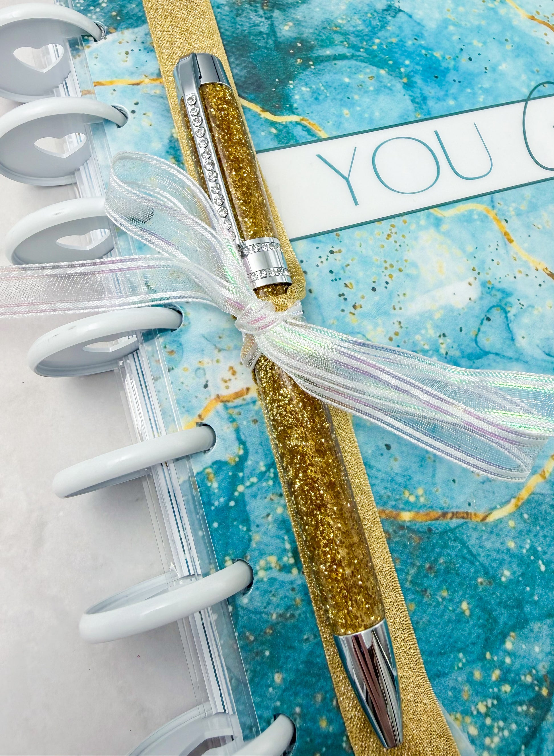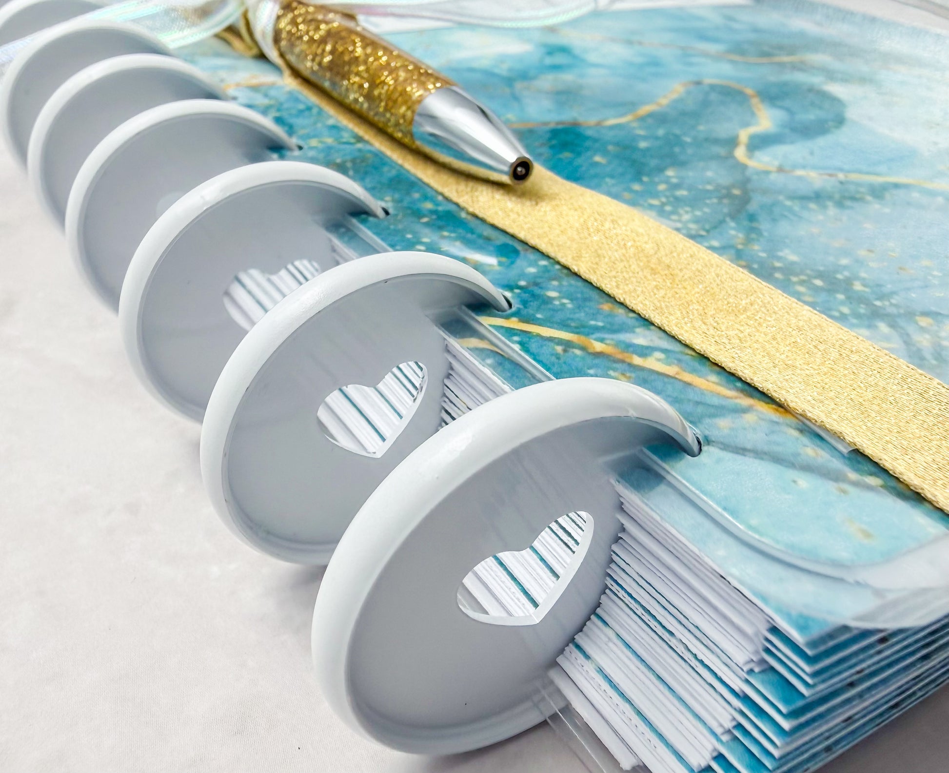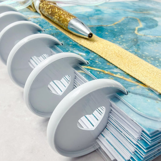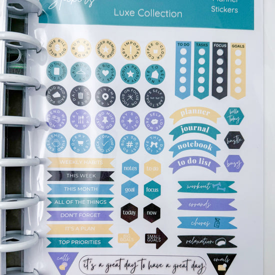 At the heart of this bundle is our stunning Luxe Planner, bound with metal discs that add both durability and undeniable sophistication. Every page turns with a satisfying glide, and every detail feels intentional, polished, and premium.