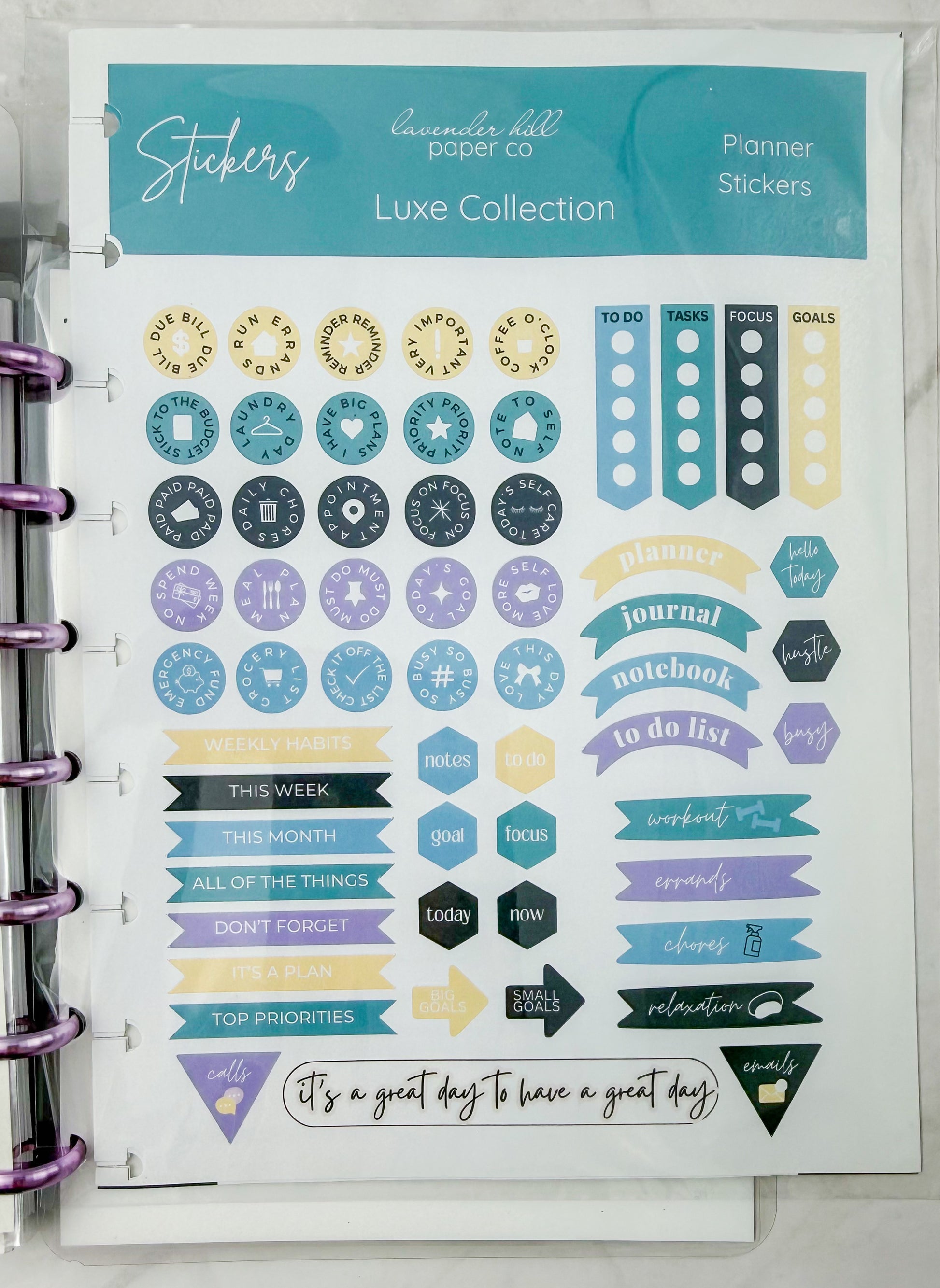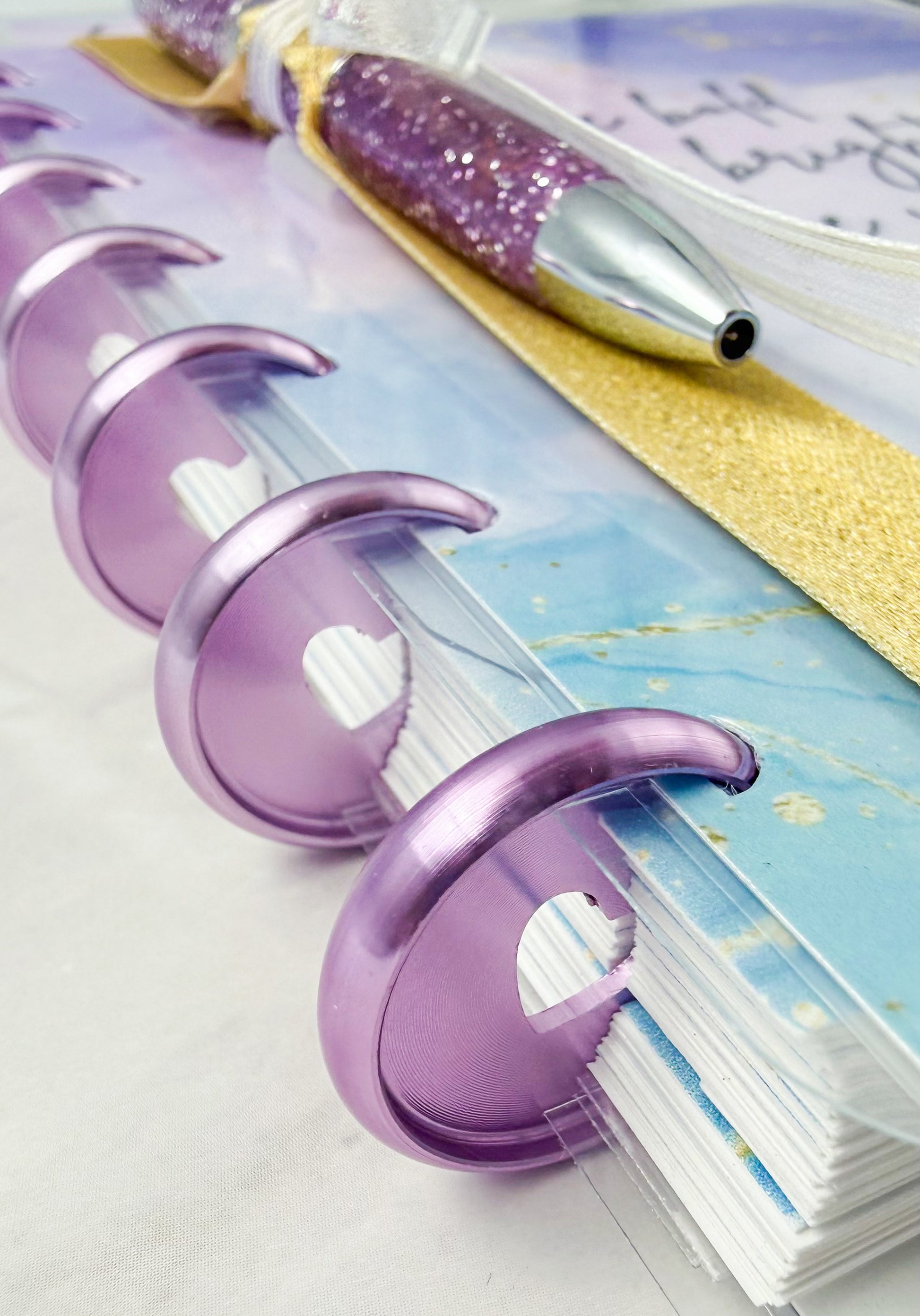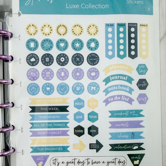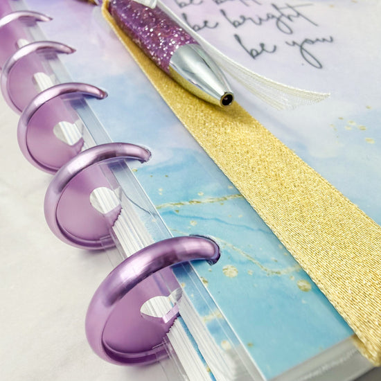 At the heart of this bundle is our stunning Luxe Planner, bound with metal discs that add both durability and undeniable sophistication. Every page turns with a satisfying glide, and every detail feels intentional, polished, and premium.