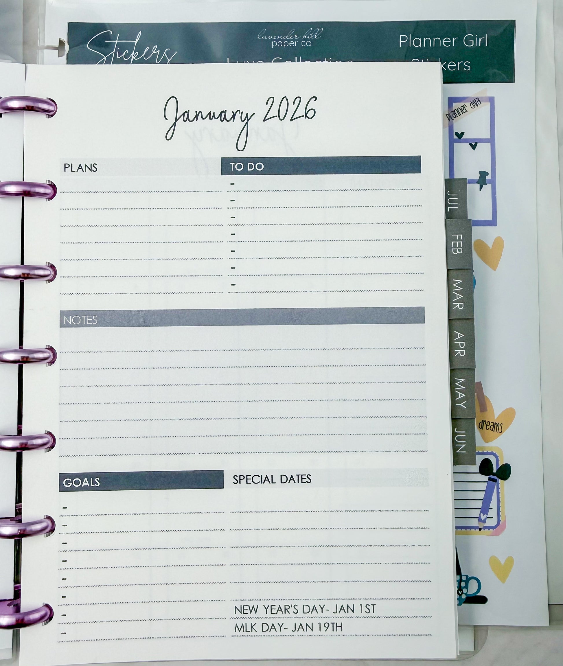 Spreads: Monthly, Monthly / Weekly Horizontal, Planning (Beginning and End) Pages, Notes Section and MORE!