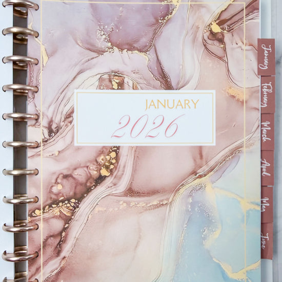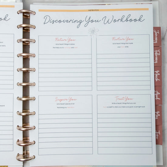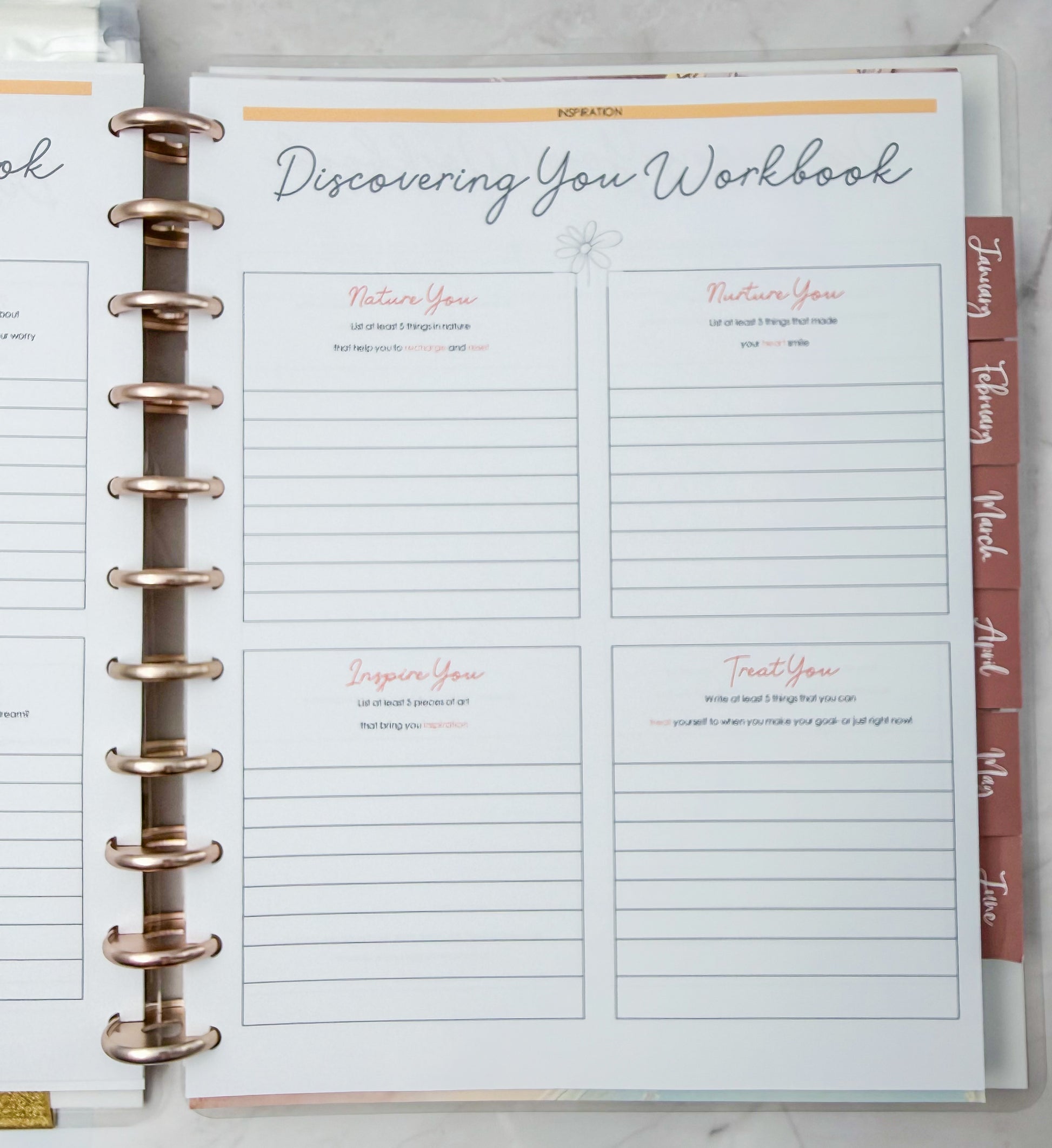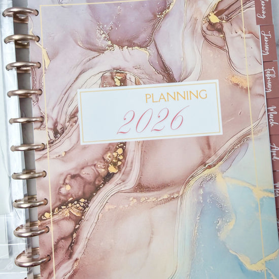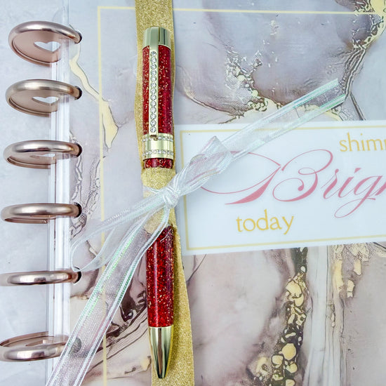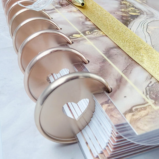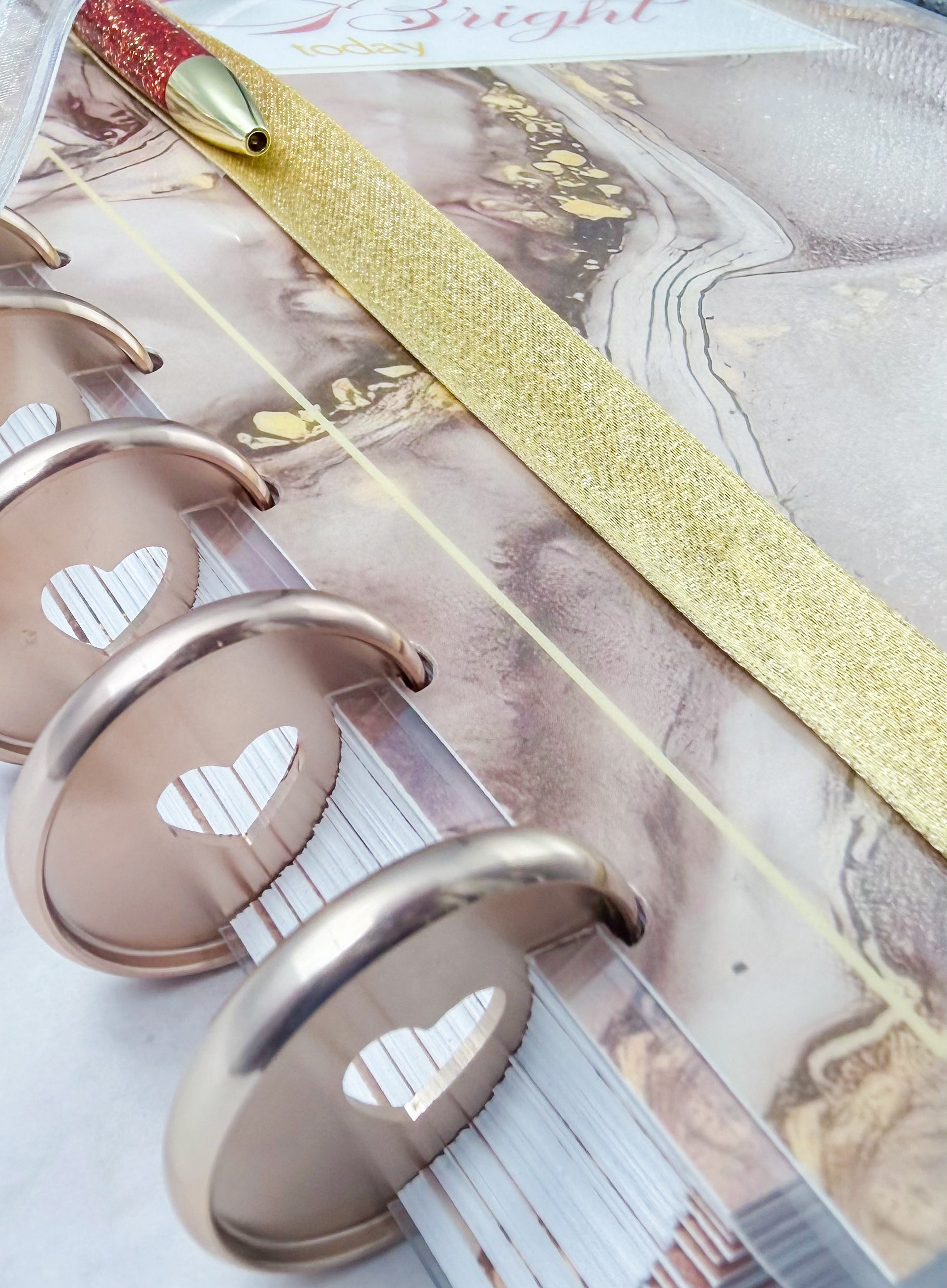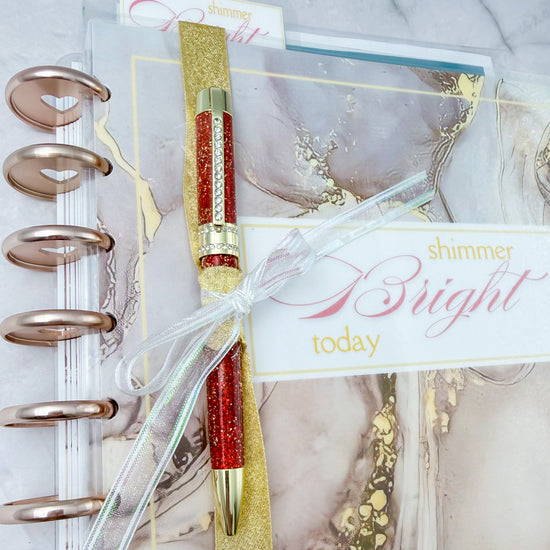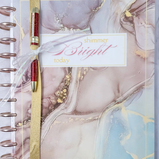 At the heart of this bundle is our stunning Luxe Planner, bound with metal discs that add both durability and undeniable sophistication. Every page turns with a satisfying glide, and every detail feels intentional, polished, and premium.