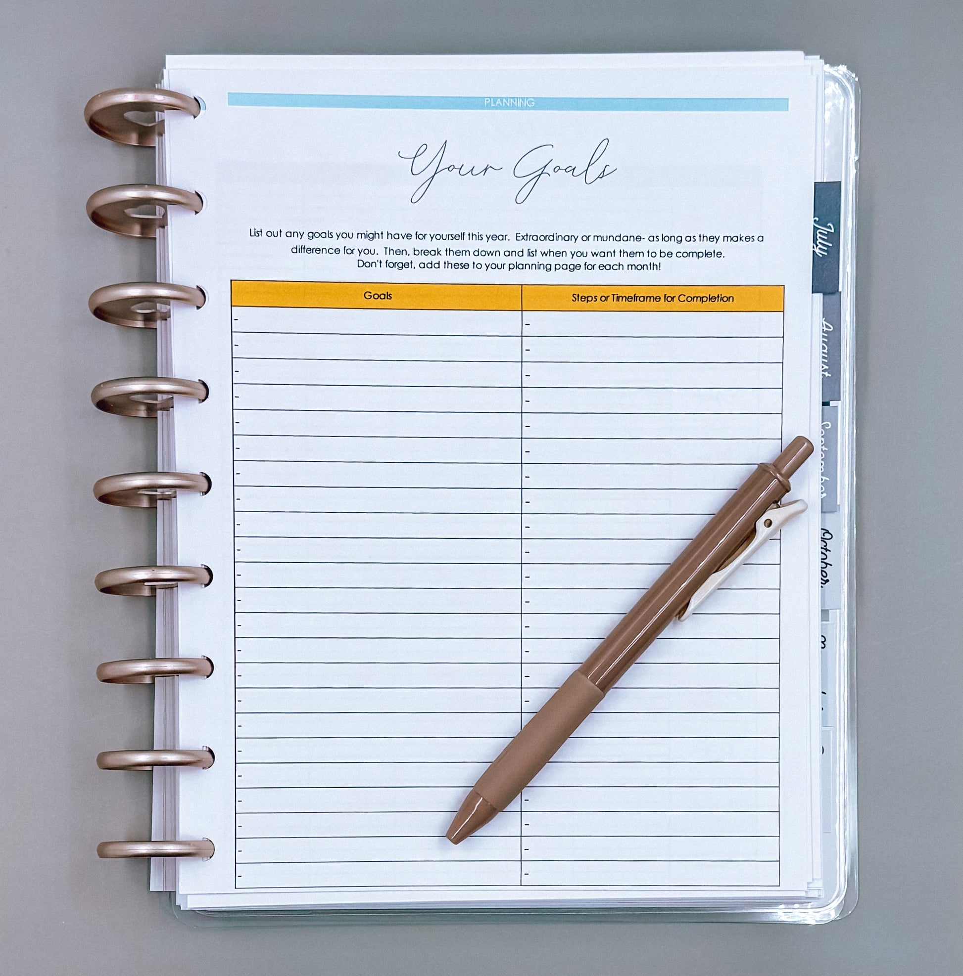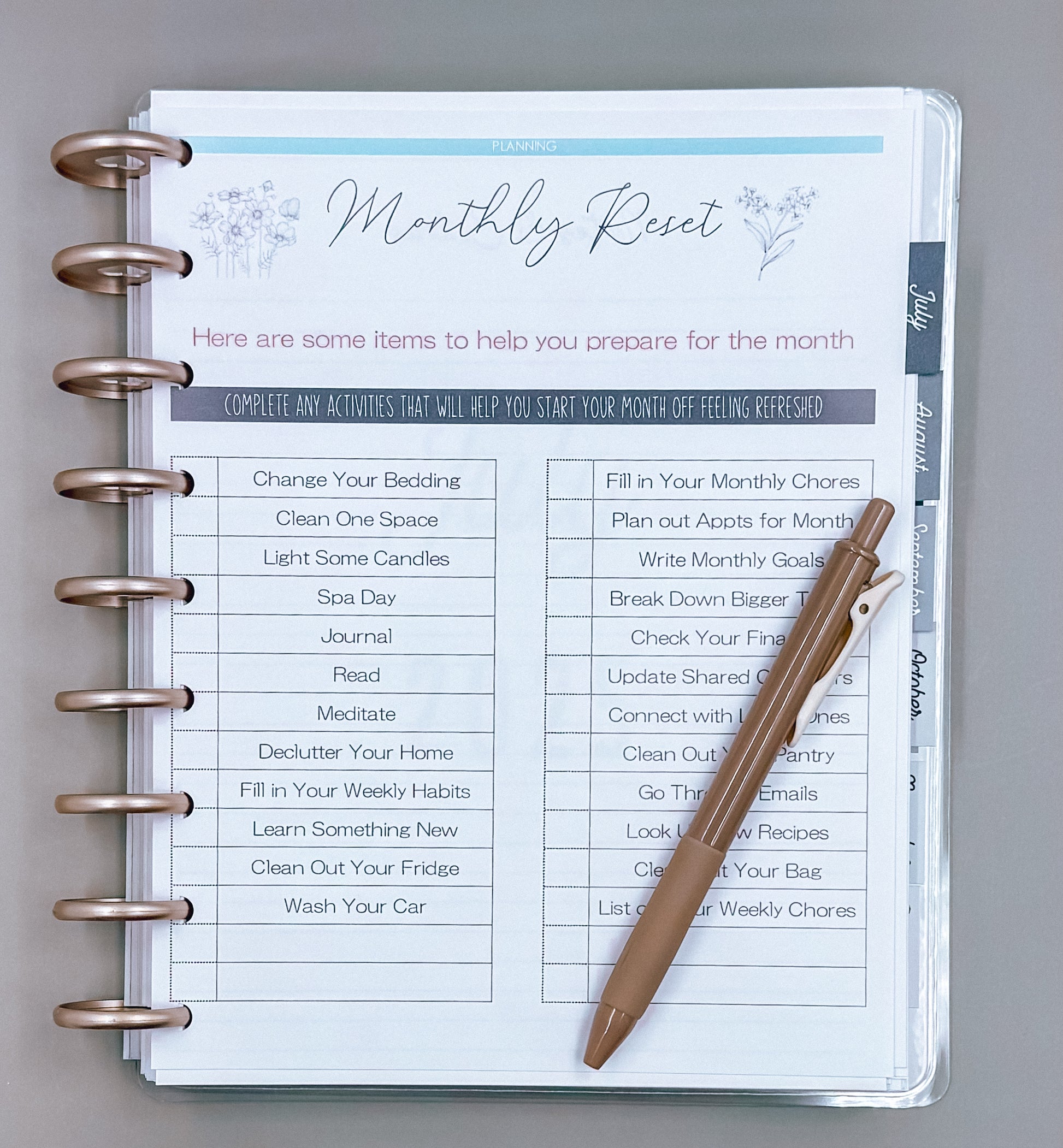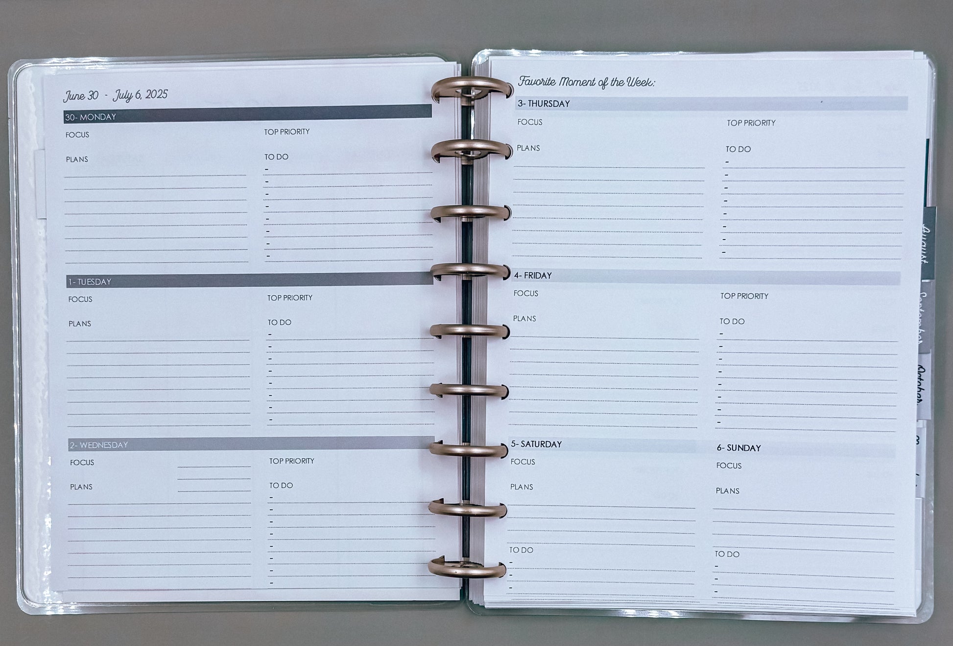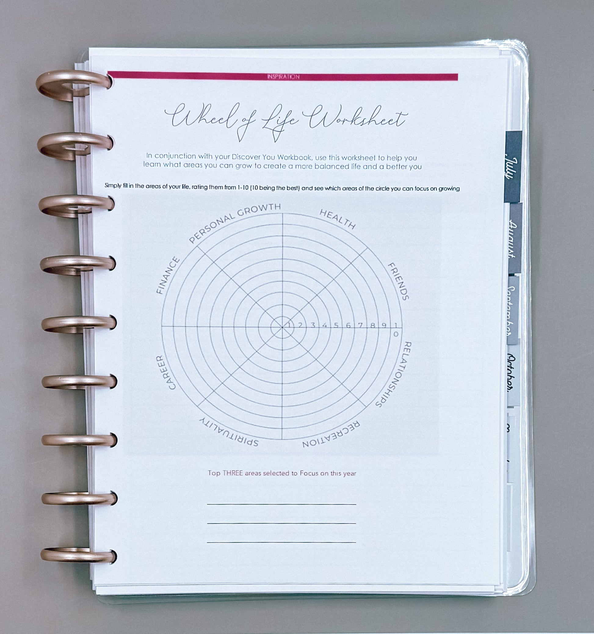 Spreads: Monthly, Monthly / Weekly Horizontal, Planning (Beginning and End) Pages, Discovery Workbook, Wheel of Life, Your Goals, Monthly Reset and MORE!