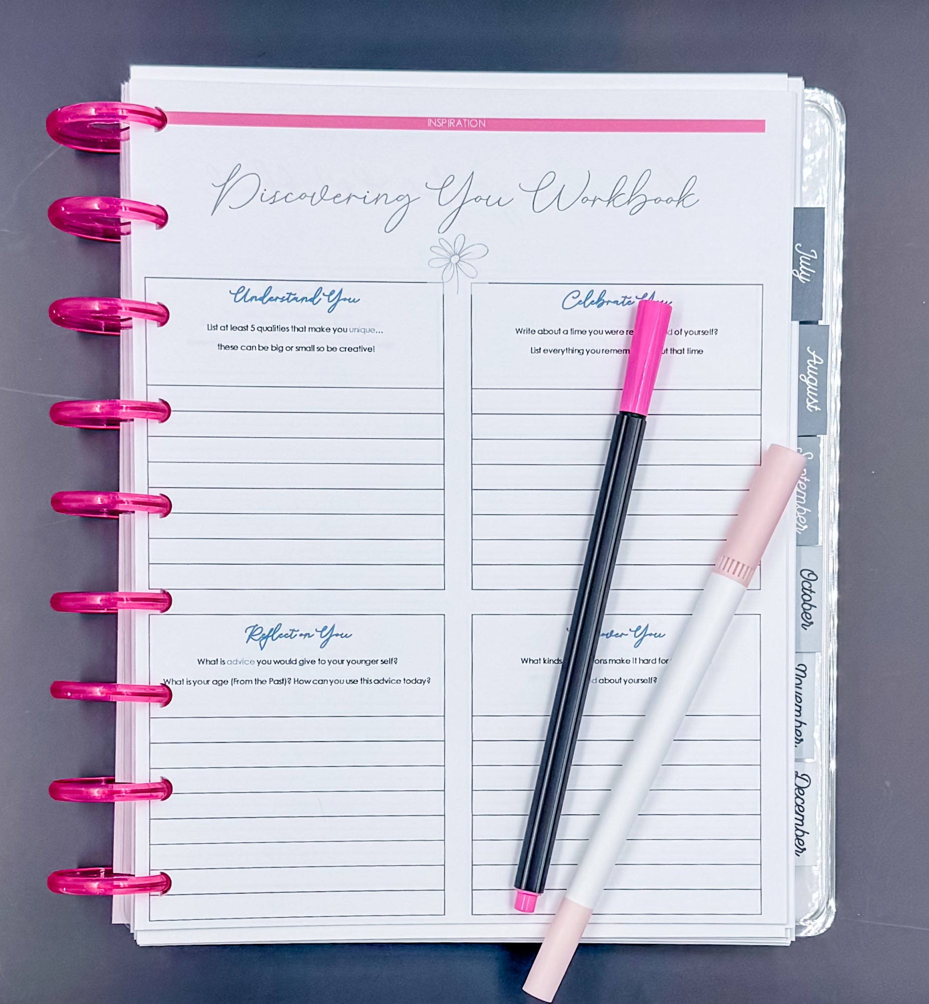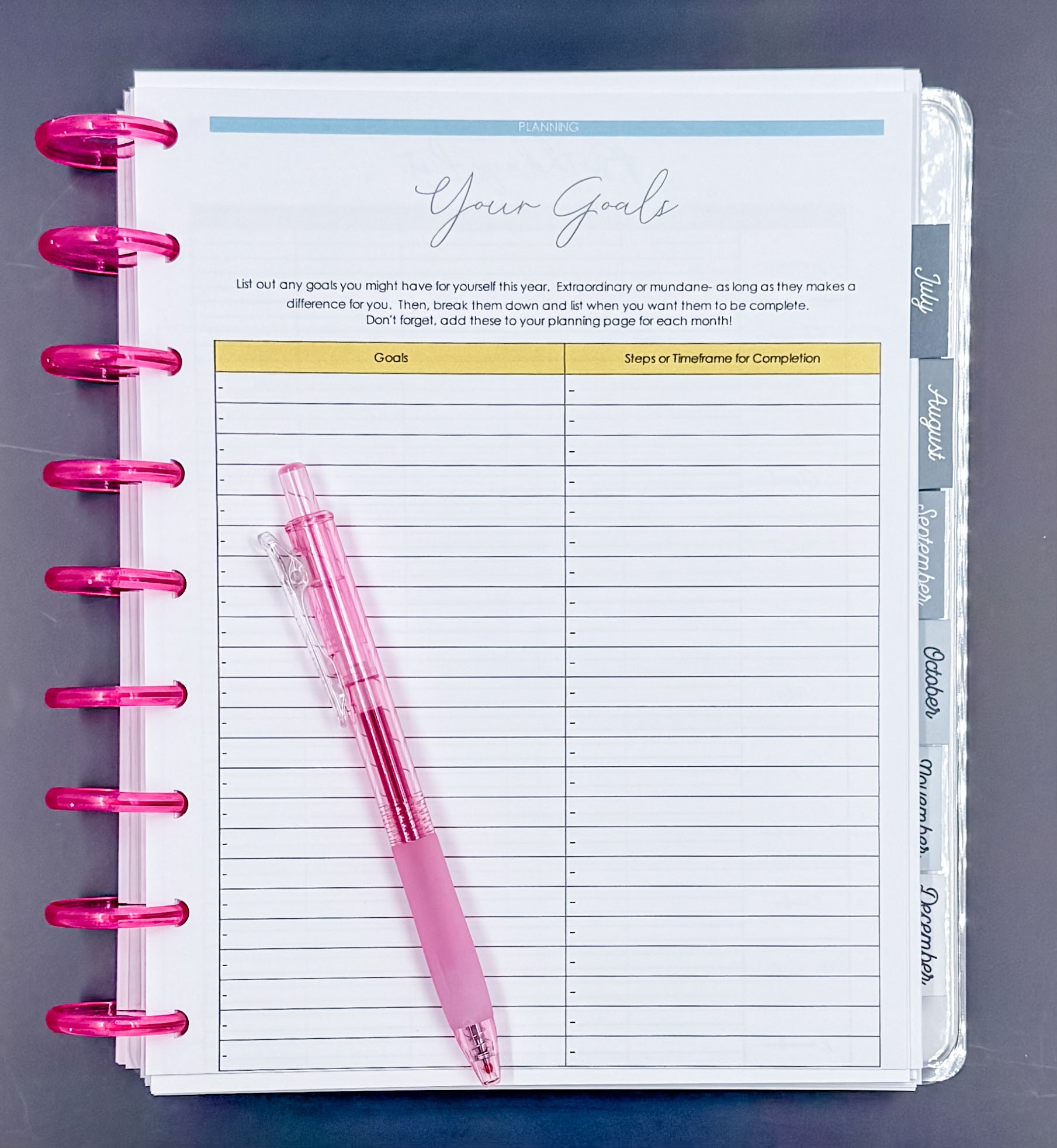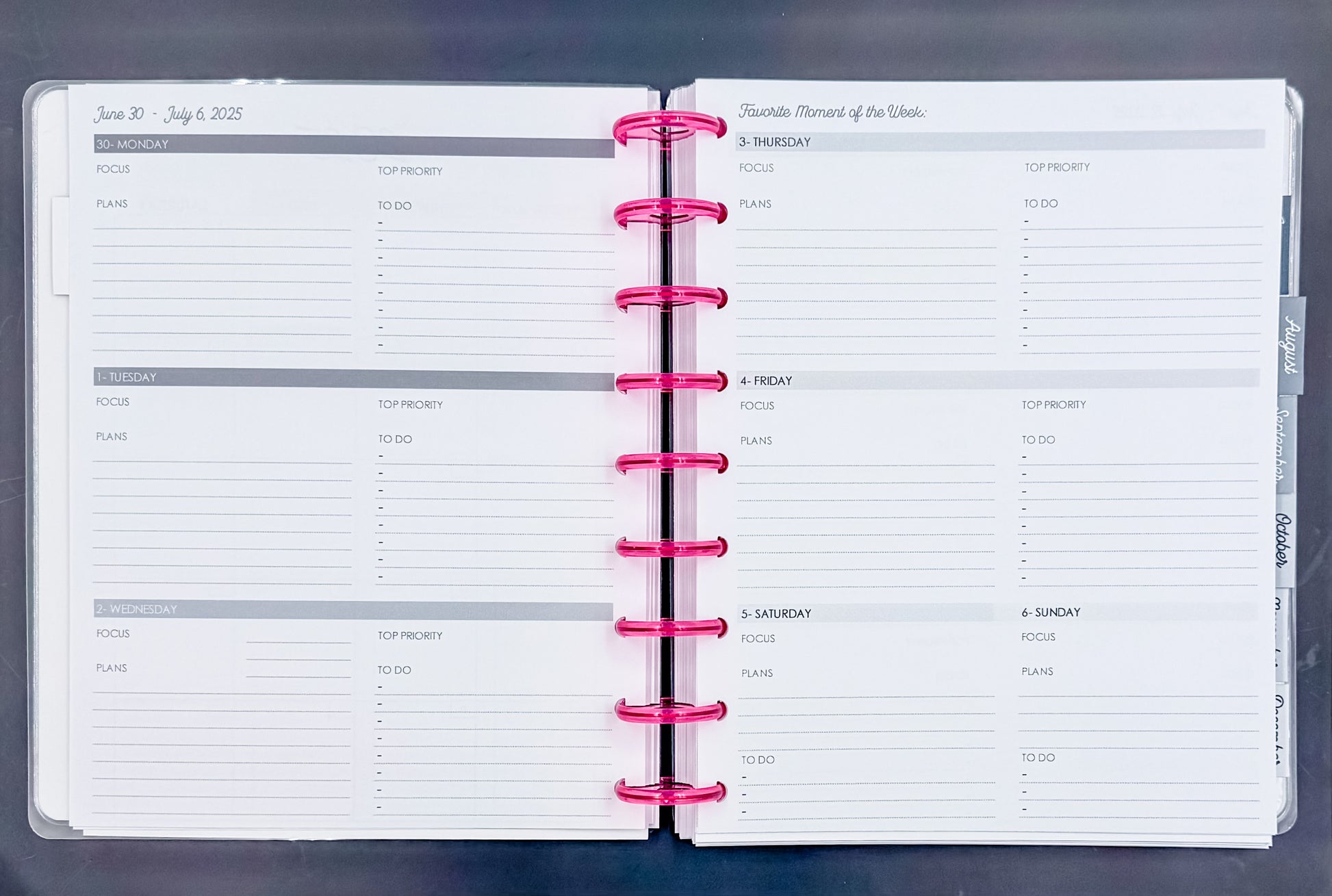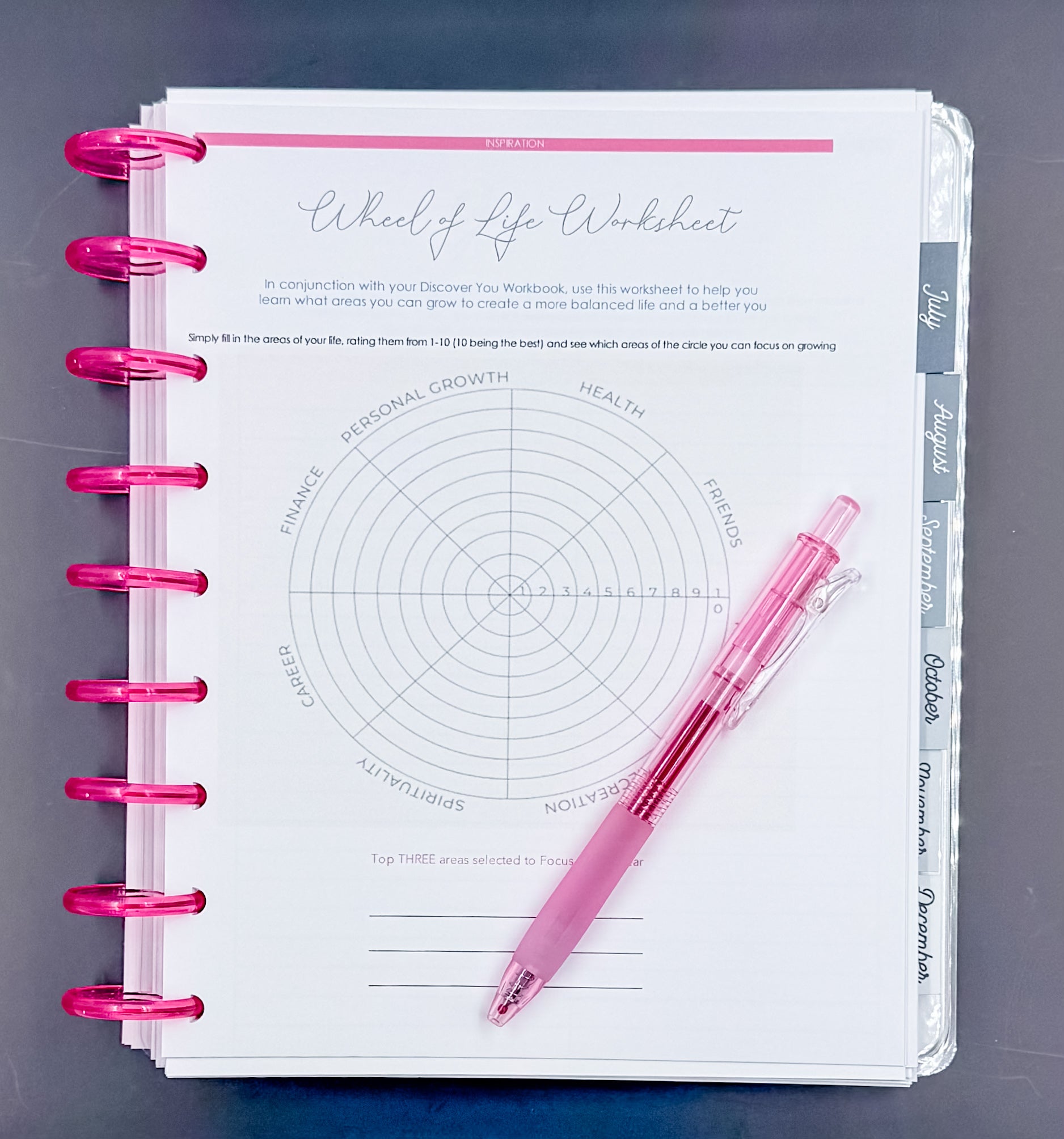 Spreads: Monthly, Monthly / Weekly Horizontal, Planning (Beginning and End) Pages, Discovery Workbook, Wheel of Life, Your Goals, Monthly Reset and MORE!