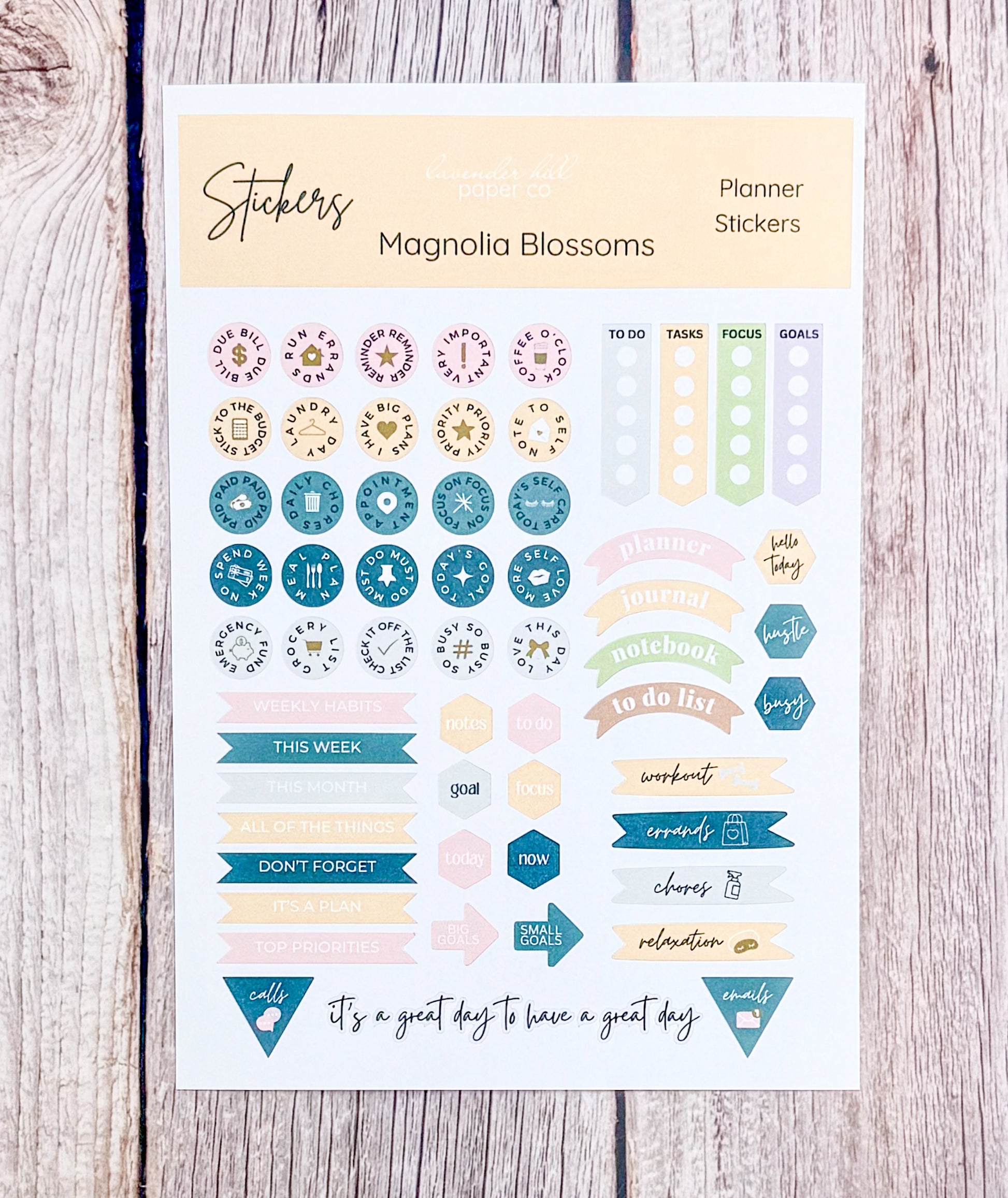 Spring Into Planning β Colorful Sticker Sheet Packs in Magnolia Blossom