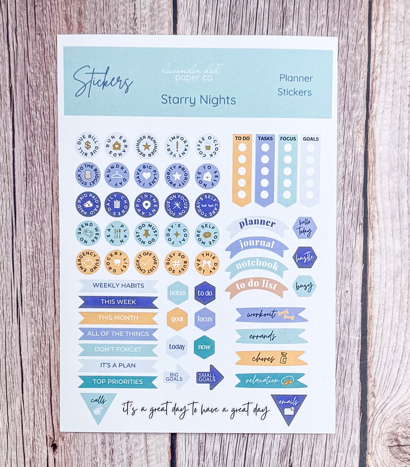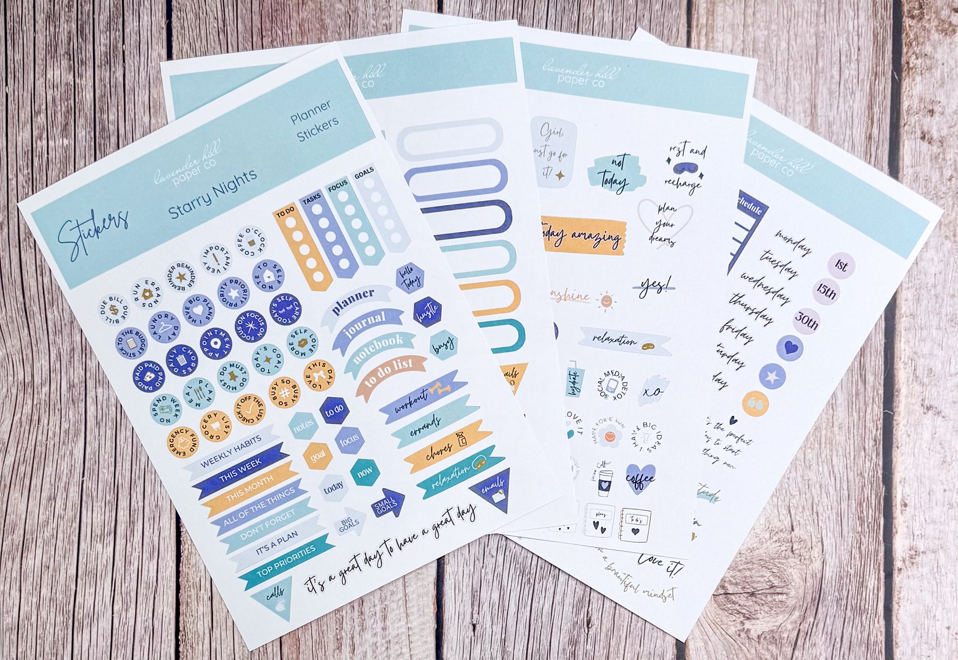 Spring Into Planning β Colorful Sticker Sheet Packs in Starry Nights