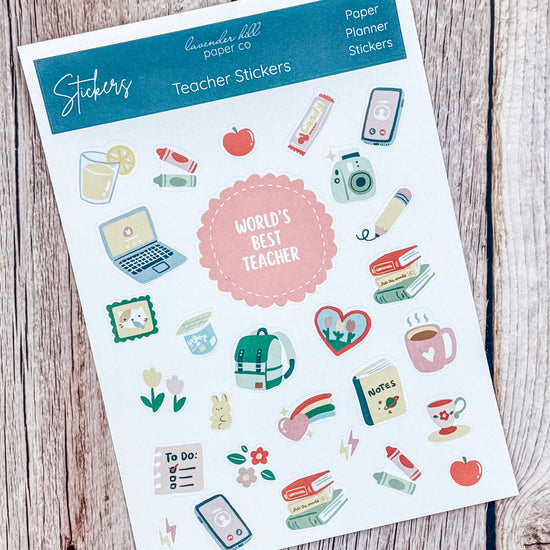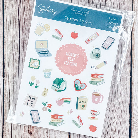 Our Teacher Collection Planner Stickers are here to add a little joy, color, and classroom magic to your daily plans. Designed to pair perfectly with our Teacher Planners, these hand-illustrated cuties include icons, pictures, and cozy touches to help you add some fun to tracking lessons, meetings, grading, and self-care moments (because teachers need those too!).