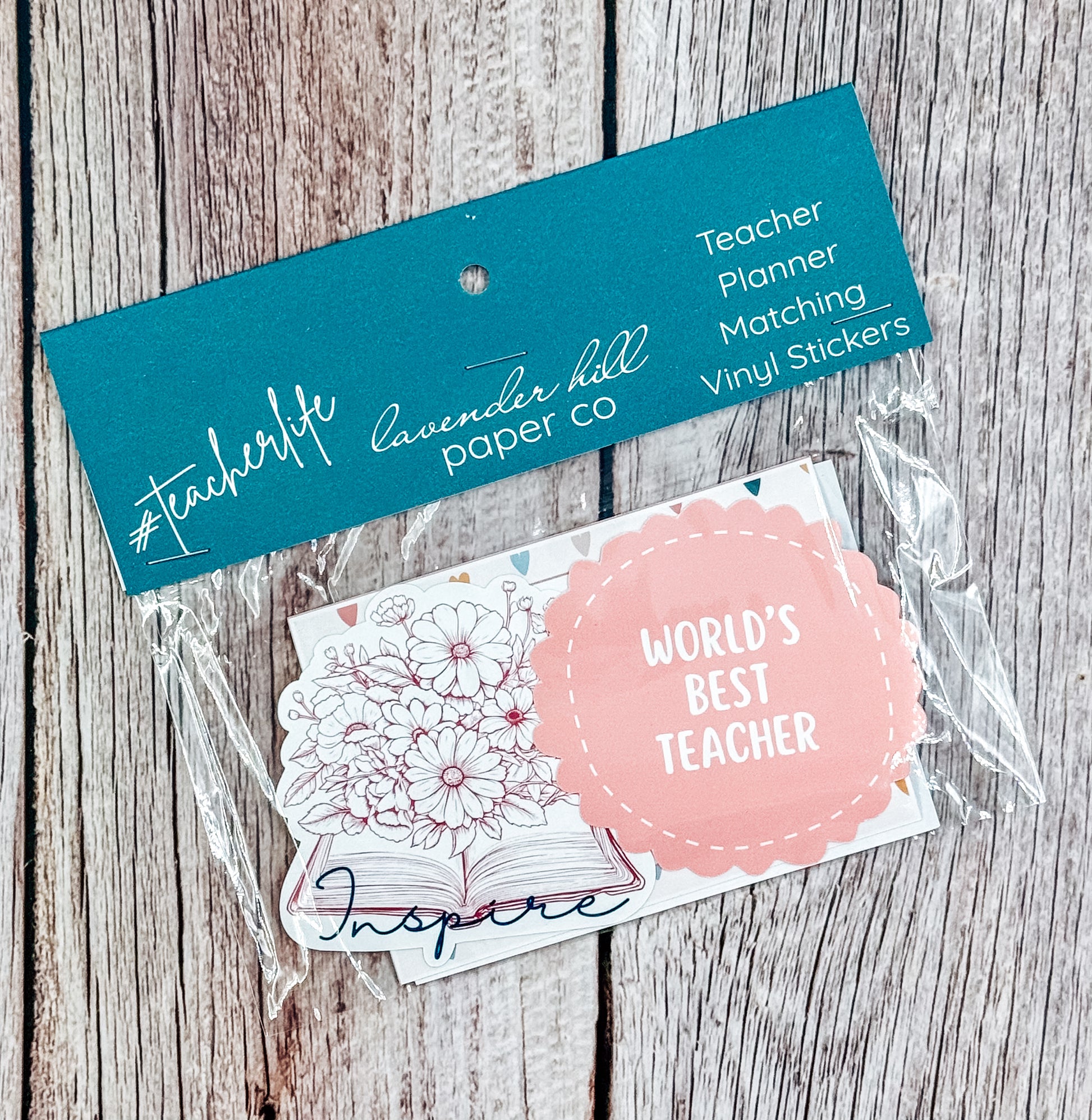 Our Teacher Collection Vinyl Stickers are the perfect pop of personality for laptops, water bottles, clipboards, and planner covers! Featuring the same charming, teacher-inspired designs from our sticker sheets, these durable vinyl cuties are ready to brighten your day from the classroom to your coffee break.