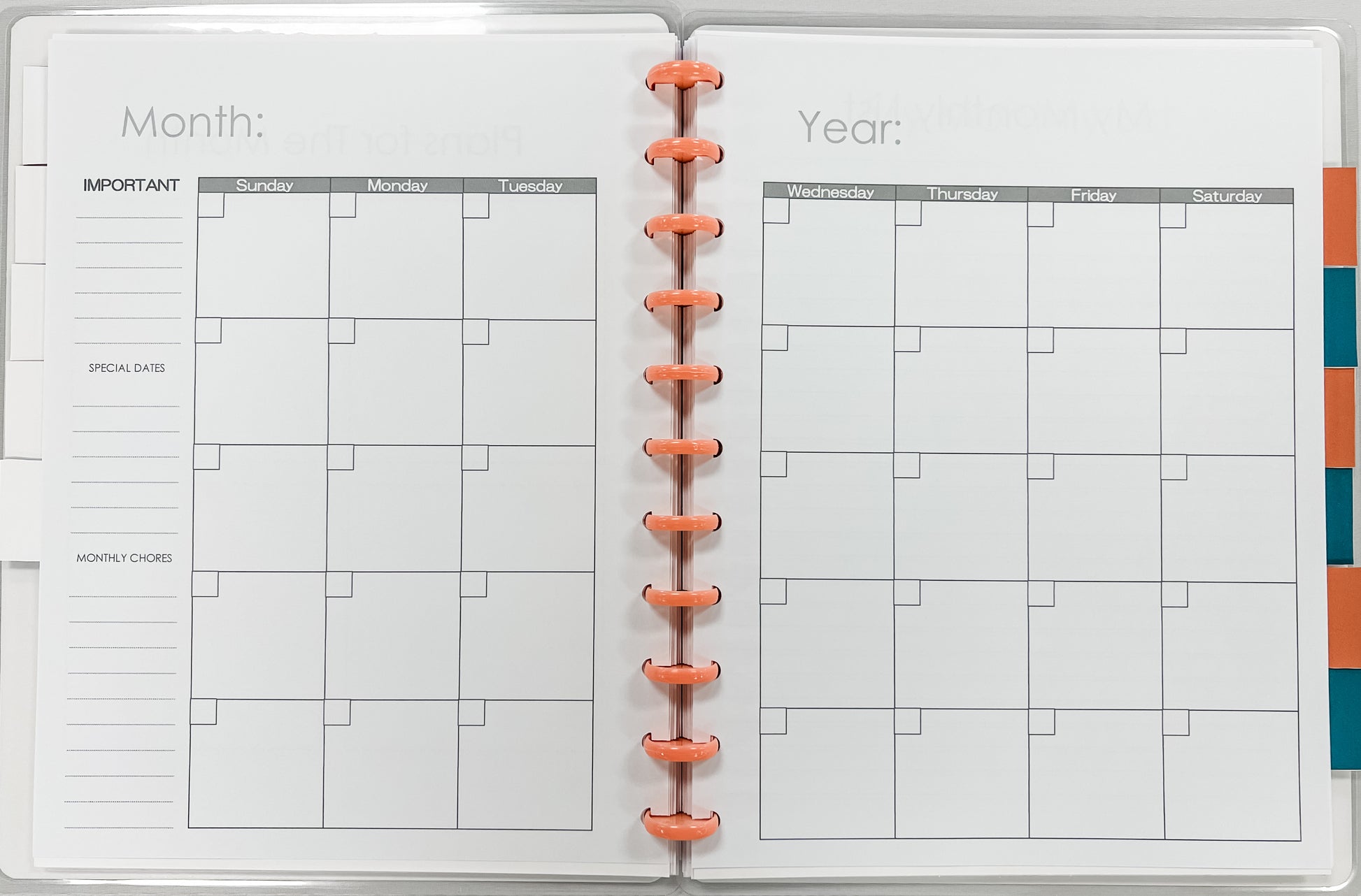 - Monthly spread with space for Important Call-outs, Special Dates, and Monthly
