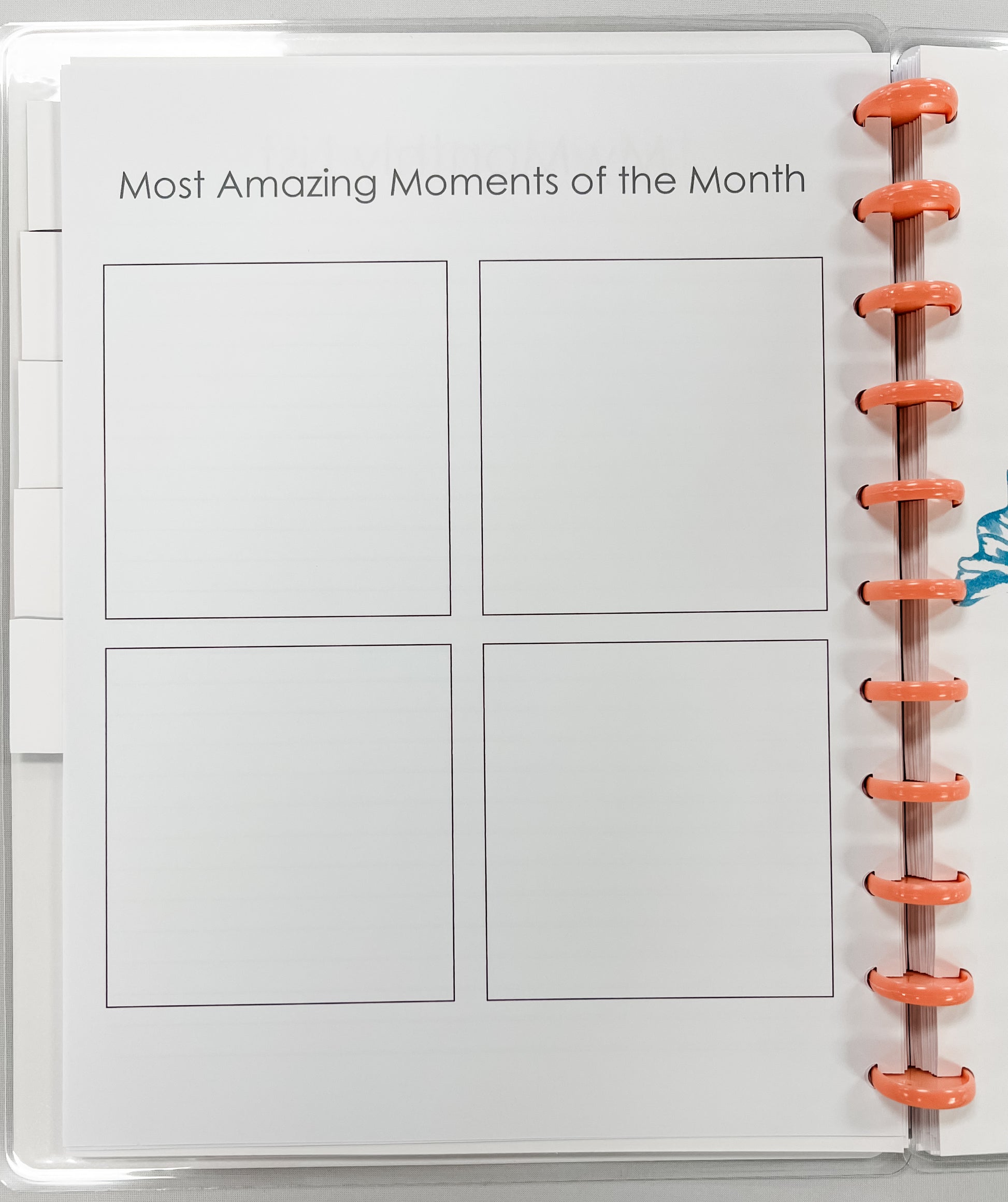 - "Best Moments of the Month" section for you to record your favorite memories of the month